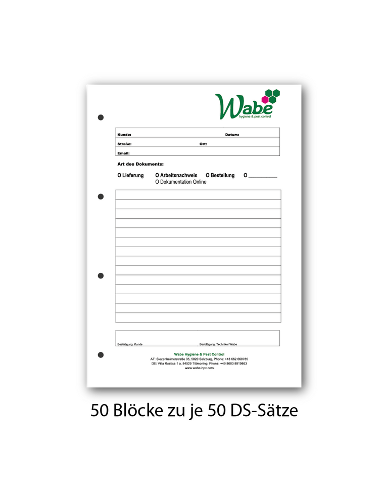 Durchschreibsätze mit 4fach Lochung50 Blöcke zu je 50 Durchschreibsätze / DINA4 Menge - 50 Stk. € 510,00 inkl. USt., zzgl. Versand